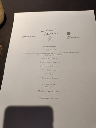 Read moreTerra es un restaurante con una propuesta seria, basada en buen producto y técnica cuidada. El menú es una experiencia interesante, que por momentos brilla a gran altura. Sin embargo, ciertos aspectos operativos, como el ritmo de cocina, lastran ligeramente la experiencia completa. ¿Vale el viaje desde A Coruña solo para comer aquí? Probablemente no. Pero si estás por la zona, es una visita que recomiendo con total claridad. Eso sí: reserva con antelación. Precio: 100€ por persona aprox. (menú degustación + botella de vino + agua). No tiene parking, pero es fácil aparcar cerca, tanto a pie de playa como en calles adyacentes.