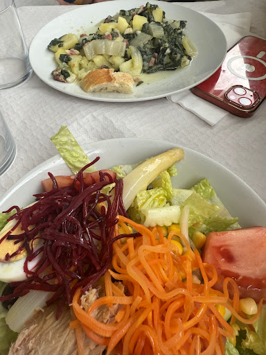 En cuanto a la comida, vi mucha variedad en el menú y eso me gustó las verduras estaban muy ricas, y las patatas fritas también me parecieron buenas. el pan estaba un poco duro y seco. Sospecho que, al ser yo que venía sola quizás me sirvieron pan del día anterior, aunque entiendo que esto puede ocurrir en ocasiones. La carne, para mi gusto, estaba bien aunque un poco seca.