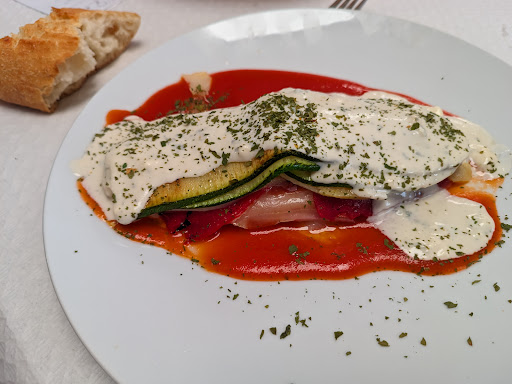 En cuanto a la comida, bastante buena, variada y rica. Cómo única pega el rebozado del cachopo estaba muy frito pero el interior estaba bien hecho. Espectacular la milhojas de calabacín con roquefort y muy ricas las pochas. En los postres hay que destacar las natillas. Al parecer tienen menú de fin de semana con platos más elaborados y un mayor precio.