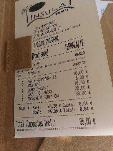 Read moreI went to see my friends play some music. I wish I’d just stuck with the tinto de verano. I ordered clams pasta but I had bad digestion ever since and it tasted really salty and pasta under cooked. It lacked taste despite the waitress recommending it. The bread was 5e and I didn’t ask for it!!!!!! No way out. Bill was 55e for tasteless lunch and expensive drinks! 8e glass of wine!!!! And bad digestion all night!!!! Not recommended!!!!!!!! Maybe choose another one or choose xiringuito next...