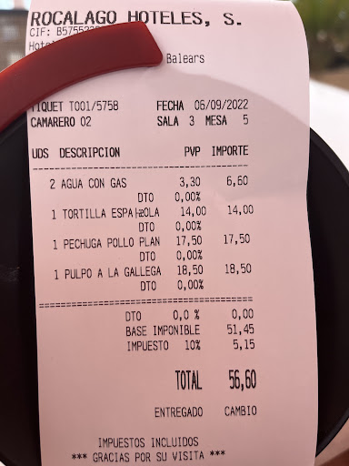 Read moreImmer wieder wenn ich auf der Insel bin muss ich auch dort den ein oder anderen Nachmittag nach meinen Fotausfluegen verbringen. Wenn es nicht gerade schlechtes Wetter ist, dann hat man von dort einen wunderbaren weiten Blick ueber die Bucht und den Hafen von Es Pujols mit seinen vorgelagerten Straenden, geniesst das kuehle Getraenk und haengt einfach nur rum. Es kann und wird dort auch gegessen, aus meiner Sicht ist alles akzeptabel, einschließlich der Preise. Was aber ueber die Jahre wirklich auffaellt, mir auffaellt, ist das staendig sich aendernde Personal, und leider oftmals von dem schon nicht besonders aufmerksamen Personal des Vorjahres noch mal unterboten. Hier sollte mehr moeglich sein, gehe ich doch auf der Insel natuerlich auch zu anderen Gastronomen und finde dort seit zum Teil 9 Jahren das selbe Personal vor, und immer auf hoechstem Niveau, auf meine Ansprueche bezogen. Hier sollte vom Besitzer/Betreiber auf mehr Qualität geachtet werden, ich lasse mich davon per se erstmal nicht abschrecken, denn ich bin ja zum Urlaub machen und nicht mich aufregen dort. Und doch erinnere ich mich an weniger gute Besuche, und kann es auch in einer Rezension nicht unerwaehnt lassen, dass man einfach mal ein schlechtes Jahr fuer seinen Besuch dort gewaehlt haben koennte und sich nicht wie geschaetzter Kunde "bedienen"...