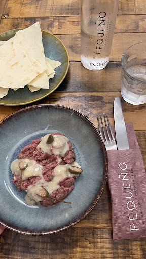 Read moreEntré a la vino teca por lo acogedora que se veía y decidí probar su steak tartar, fue simplemente inolvidable: carne de primera, perfectamente aliñada, coronada con una suave crema de parmesano y una flor de alcaparra que le da un toque único al aportar un contraste ácido y salino que realza el sabor de la carne cruda. Si sois tan amantes como yo de este plato no dejéis escapar la oportunidad de probarlo aquí. El lugar tiene un ambiente tranquilo, acogedor y una relación calidad-precio difícil de encontrar hoy en día. Además, el detalle de contar con una vinoteca tan variada le da un encanto especial. Gracias a Christophe por la atención, estoy encantada....