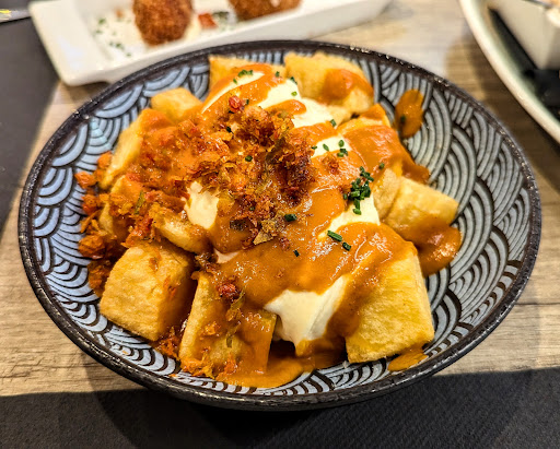 I honestly don’t understand how this place has such a high rating. For me, everything was either average or below average. We expected a tapas bar with tasty, reasonably priced small plates, but instead it was some unclear format – neither proper tapas nor proper main dishes. Prices were really on the high side, portions were small, and service was extremely slow. They forgot items, delayed others, and overall nothing ran smoothly. The waiter introducing the tapas was friendly and cheerful, but that didn’t make the service any faster. Even the dishes themselves were disappointing. For example, the ribs – you’d expect them grilled or roasted, but instead they came in tempura, which was odd. Portions in general felt small for what you pay, yet the bill looked like for a mid-range restaurant. Overall, it felt like everything that could go wrong, somehow did. Honestly, we left wondering how this place manages to have such a high rating, because our experience was...