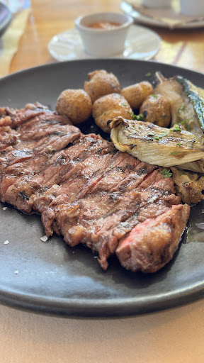 Als kleinen Appetit-Anreger bestellten wir 1x Pan y Allioli und 1x Carpaccio de Gamba (zum teilen). Carpaccio de Gamba war ein sehr überschaubarer Teller für 29 €, aber zumindest geschmacklich ausgezeichnet. Beim Pan y Allioli war das Brot leider schon älter, wurde dafür aber gleich drei mal berechnet obwohl die eine Portion eigentlich der einer normalen Ein-Personen-Portion in den anderen Restaurants entsprach. Das Solomillo (jeweils 35 €) kam mit einem Drittel einer Mini-Aubergine, einem Mini-Scheibchen Kürbis und zu vielen Kartoffeln daher - sonst nichts - keine Soße, kein Bratensaft, kein Salz, kein Pfeffer, nichts. Das Filet war von sehr guter Qualität und auf den Punkt (medium) , aber nie und nimmer 250gr. - ich würde mal auf max. 160gr. tippen. Als Gesamt-Erlebnis dann doch zu trocken und eintönig. Ich würde bei dem Preis zumindest mal zwei kleine Sößchen dazu servieren. Als Dessert hatten wir Brownie (war gut, wir hatten es mit Vanille-Eis bestellt - bekamen aber Schoko-Eis), Flao (war ausgezeichnet) und Tarta de Queso (leider nur süß und ohne besonderen Geschmack und das dazugehörige Vanilleeis hatte schon Eiskristalle).