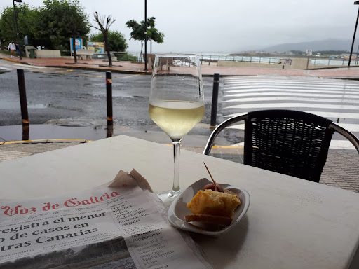 Al volver de la playa me detengo a tomar un ribeiro fresquito o una cerveza, que saboreo con las 'tapitas' con las que obsequian a los clientes (atención a la tortilla de patatas, que está buenísima).