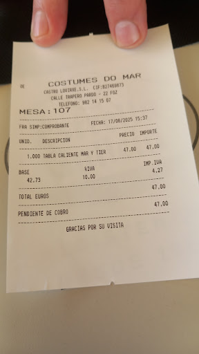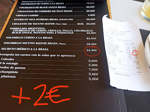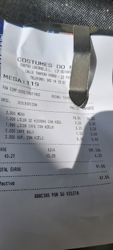 Read moreNo tengo palabras para describir este sitio.... mas de 2h para comer...1h para una cerveza... entre plato y plato tienes la digestión hecha, pidete un pincho, como observáis, pedimos cafe con hielo y nos cobran el hielo 0,30 será la crisis del hielo...la parrillada de menu 3 trozos de carne y uno de ellos pollo y totalmente crudo.... pedimos un digestivo y nos traten un chupito q ni el hielo mojaba, el que nos habian cobrado claro... no pidais un refresco con hielo pq os sale a 5€ por lo menos... sin duda para no volver, ni a comer ni a tomar una cerva