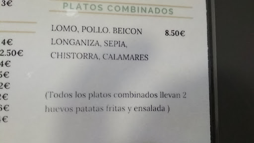 Un par de cosas a comentar Es una verguenza esperar mas de 20minutos para un combinado de pechuga y un bocata de fuet...(sin tener faena ya que haviamos 8personas...) Cuando lo traen los huevos secos (dice que no me Puede hacer otros porke salen asi..) k poca vergüenza... pollo seco y sin la ensalada del combinado que especifica en su carta.. Hemos Venido muchas veces pero es una lastima k siempre sirvan estos...