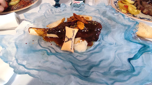 Fuimos a almorzar y estaba el comedor montado con mesas grandes y llenos de comida, había muchas moscas también, no habían llegado aún los invitados,nos pusieron en otro comedor más pequeño, más sucio y con cosas por todos lados, cajas, cubos, fregonas... Y también tenían montados platos de mariscos llenos de moscas,sin un mal paño para cubrirlos En la calle más de 38°y dentro sin aire acondicionado. Nos puso la bebida un niño pequeño. Las tapas dan mucho que desear, pedimos potro y gamo y una ensalada, algo rápido para comer e irnos hacia mucho calor. La ensalada oxidada, vieja y la cubrieron de salsa para que no se viera. El potro me sabía a cerdo a presa y el gamo lo mismo, de hecho era la misma carne la una que la otra..y olían mal Ante tal situación ni terminamos de comer.. Pedimos la cuenta. Paso más de una hora desde que llegamos y nos dimos cuenta de que aún la celebración no había llegado y la comida allí puesta con esas temperaturas. Seré más escrúpuloso a partir de ahora al llegar a cualquier restaurante. Aquí no...