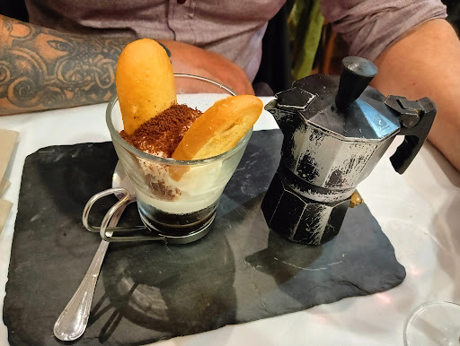 Fuimos a éste restaurante por la recomendación de una vecina, 4 personas. Primeros platos (mesa incompleta porque sacaron la comida de 3 personas y la cuarta, yo, mirando más de 15 minutos) Arroz negro con chipirones y dos raciones de Queso frito con lacón y miel. El arroz frío y pasado, los chipirones para llevar (más duros que una piedra) las raciones de Queso frito, una más grande que la otra (parece que no sabe medir el corte el cocinero). Por fin traen el 4° plato, Picaña, se devuelve a cocina porque estaba pasado de punto. Cuándo lo traen de nuevo, medio aceptable porque los bordes chamuscados. Segundos platos (tras 35' de espera) Chuletas de cordero (duras), Escalope de pollo con salsa de queso (aceptable). Picaña (aceptable), Bacalao confitado sobre salsa de piquillos (Bacalao salado, la sal se había pasado a la salsa también) El dueño se tiene que poner las pilas, no se puede tener una camarera para todo el salón, muy lento excepto para cobrar. No volveré. Para el dueño; mire usted, no se puede tener una persona para atender el comedor ella sola, eso por un lado, por otro lado debería tener mejor género, qué si qué es más caro, pues ajuste los precios, y ya qué estamos pues aprovecho y le comento que el hecho de qué usted no vea si algo está o no limpio porque no revisa su negocio ya le digo yo qué la estantería de los vinos encima del piano tenía más polvo qué la tumba de Tutankamon. Esos pequeños detalles hacen qué un establecimiento más allá de tener un buen producto renueve las ganas de volver así que le voy a dar la razón en su respuesta, somos buenos clientes porque le marcamos los fallos a corregir y le digo más, mi crítica va desde el respeto por un compañero de profesión porque soy cocinero profesional, especializado en parrilla...