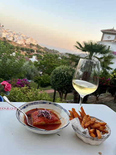 Now the cons: Menu is bewildering. Menu presented is in a totally different format to the one displayed on the outside of the restaurant. Additionally, dishes seemed to be coming out that weren't even on the menu. Perhaps you need to be a local to order these? Food is extremely overpriced. 6 anchovies by themselves for 16.50! Drinks overpriced. We ordered sangria at every restaurant we visited on our holiday. Not only was no jug of sangria available (i.e. just available by the glass), but each glass was overpriced and by far the wateriest we'd had: and this includes the pre packaged sangria available at Mercadona! Not really sure you can rely on the descriptions of the food: The "main" of cod with ratatouille was a meagre piece of cod, on what was more like a serving of gazpacho. If this base ever was ratatouille at some point, it must have been pureed into oblivion first before being presented. Toilets left something to be desired: not in the best condition, and had no soap. No toilet paper in the women's toilet. Service was appalling. Not only unfriendly, but slow. We waited - and this will sound like I'm exaggerating, but I assure you I am not - nearly 45 minutes for the bill after requesting it. Our party got so fed up of waiting that the non payees from our group just got up and started to walk round the nearby gardens. Music blasting out from a speaker near our table was so loud that we did wonder if we had walked into a club at one point.