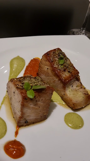 Very few people eating when we arrived; we had booked a table. It's only a small venue but notice it had good reviews. My darlin's starter was something interesting (can't remember what 🤣) and she (remembers) enjoyed it. I had the garlic prawns; they had a kick and I had to dunk my bread 😋. My darlin' went for the rabbit and me, the fish. Both delicious. Wine suggested by the waiter but not to our palette although at the price, it should have been nectar!