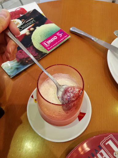 We stopped for a quick rest and ordered two cakes and a smoothie. The cakes were ok, nothing special, while the smoothie were the biggest joke on our trip to Spain, especially considering they charged over €4 and had a separate smoothie menu. First it was served as a poor tasting smoothie with almost half the frozen fruit still in one piece, then after pointing this out it came back slightly more blended but still all the frozen strawberries were still whole and when pointing this out they told us they couldn't do better and that this was the way smoothies were consumed in Spain, eating the frozen fruit with spoon (ha... nice try huh....I wonder why they are called smoothies). I wouldn't recommend this place and if you despite the many bad reviews decide to go here I strongly suggest to not order outside of the cakes on display as they weren't even able to...