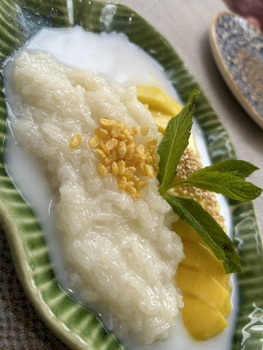 Helado de coco con mango: Para finalizar nuestra experiencia, elegimos el helado de coco con mango. La combinación del cremoso helado de coco con el frescor del mango fue un cierre perfecto para una comida extraordinaria. La dulzura equilibrada y la textura suave del helado nos dejaron deseando más. Ensalada de papaya verde y excelente combinación entre cítricos y frutos secos. El Servicio