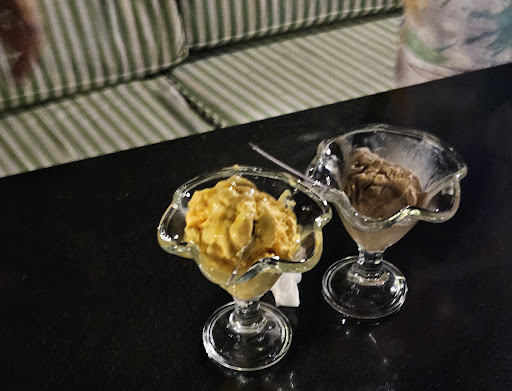 No sé si ha habido algún cambio de dueño (los camareros eran todos diferentes de mi última visita hará unos meses) o que ha pasado, pero al menos los helados que allí tomábamos no tenían nada que ver con los de ahora, que sin ser malos, era notable la diferencia (trozos de hielo dentro del helado, sin cremosidad y faltos de sabor). Pedimos cuatro bolas de helado, que sirvieron en dos copas (éramos dos personas), ya el tamaño nos extrañó (por pequeñas), las sorpresas aún no acabaron, el remate llegó cuando pedimos la cuenta y nos cobran 13.80€ por cuatro tristes bolas de helado 🤔. Ni por tamaño ni por calidad se merecen cobrar 3.45€ por una simple bola de helado... En cualquier heladería de esa zona el precio es aproximadamente el 50% menos.
