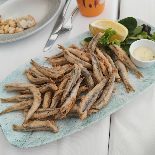 Finalmente agarra trae los 6 langostinos nos los muestra y pues de todo íbamos a imaginarnos que hablaba de un entrante cuyo precio total es de 50,40€. Todo un ejercicio rápido de no entrar en tener que informarnos de lo que nos iba a vender como una generosa sugerencia y no una venta un tanto mañosa. Nos pregunta que de donde es el acento y entonces confirma que “no somos locales” y acto seguido llegan los 6 animalitos, muy ricos ellos. Nos los comemos y luego los otros entrantes y finalmente los platos.