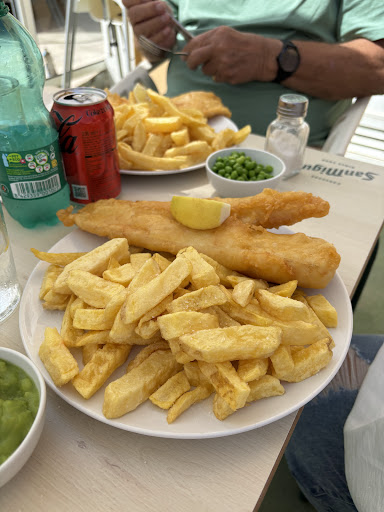 Not being one who relishes good old British grub whilst abroad but stumbled on this wee gem almost by accident whilst a day exploring Fuengirola somewhere near the harbour. There were several people eating outside and my hubby was ‘seduced’ by the delicious aroma of fish and chips. I said bye bye to my idea of tapas and we sat outside and ordered.