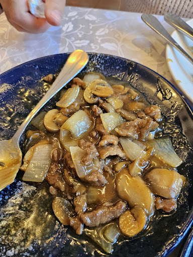 Great service and the food was great as well! We ordered from the daily special menu (appetizer, main dish, dessert, coffee/tea) for approximately 6ā¬. I ordered the beef with bamboo and mushrooms (for an appetizer they allowed me to substitute hot & sour soup for the spring roll). My husband had the chicken and almonds (hot and sour soup). My favorite was the soup (which was spicy, just the way I like it) and the chicken and almonds. We were offered dessert, but we were full... We ended up taking a full order of fried rice and half of each main dish home!! We had white coffee to end our meal!
