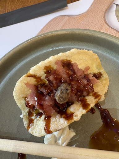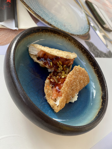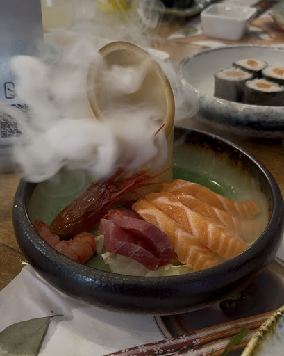 No te avisan de que el sashimi es limitado, por no hablar de que te ponen supuestamente 4 piezas (a mi me vinieron 3), y de unas dimensiones ridículas. Tuve que pedir hasta 4 veces el mismo plato (tartar de salmón) y me decían que estaría en camino y que vendrían los 4. Al cabo casi de 1h después de pedir el primero, se lo vuelvo a repetir y me dice el chico que no ha visto salir ninguno y “creía que no había”. Si vas a un local a dejarte un dinero por X productos y te limitan el consumo del sashimi sin decírtelo previamente ni te dicen que no hay tartar de salmón, que quizás es de los mejores platos que podría haber viendo lo que vi después… pues vamos mal.