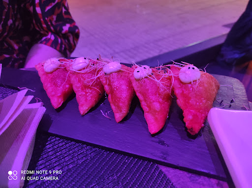 Quizás íbamos con otras expectativas, porque nos lo recomendaron como un buen restaurante donde comer comida asiática y en mi opinión hay en Fuenlabrada otros especializados mucho mejores y más económicos. Combinan comida asiática con comida mediterránea y tipo burguer. Aunque el día en el que fuimos hacia una temperatura alta, en el interior no tenían puesto el aire acondicionado por lo que tuvimos que salir a la terraza. Una terraza en una plaza muy grande compartida con otros locales. Mucho ruido por la gran cantidad de personas que había entre todos los locales. Como punto muy positivo, camareros muy amables y serviciales. Relación calidad -precio algo desproporcionada. Creo que no se corresponden unos precios elevados con respecto a los platos ofrecidos. Ante la falta de oferta de comida asiática, que es a lo que íbamos, pedimos unos huevos rotos con gulas y gambas en el que habría unas 10 gulas contaditas debajo de un plato de muchas patatas junto a unas pocas gambitas congeladas y unos huevos con las yemas cuajadas. Pedimos pulpo, porque en ninguna parte de la carta especificaba que picaba como un demonio. Al parecer debe ser por la salsa Kimchi. De haber sabido que picaba tanto no lo hubiéramos pedido, pero el pulpo estaba bien de punto de cocción y bien presentado. También pedimos un combinado de sushi, que dejaba mucho que desear. Gran proporción de un arroz machacado, casi no se distinguían ni los granos, apenas se distinguía el pescado y una mezcla de elementos dulces que no vienen a cuento en un combinado de sushi en el que no había makis algo más tradicionales , ni shasimi, ni nigiris, ni oshis... Me queda la espinita que no haber pedido raciones por cada tipo de sushi, pero nos gusta.mas.la variedad y pensamos que con el combinado tendríamos un poco de todo. Me apena dar una crítica tan pobre porque estuvimos muy bien atendidos, pero como dije al.principio probablemente íbamos con otra idea y nos encontramos con algo un poco más vanguardista de lo que pensábamos. No me cierro a volver porque una vez conocido, quizás optemos por otro pedido diferente y tenga que cambiar...