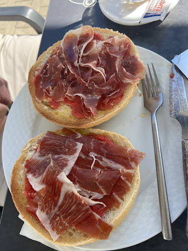 Read moreÍbamos de paso a más de las 16h y les hemos preguntado si podíamos comer algo rápido para no pararnos mucho. Rápidamente nos han ofrecido un serranito (bocadillo de jamón, lomo, pimiento y queso), que nos ha parecido muy buena idea. Nos han atendido genial, amables y eficaces. Además, el pan casero y tostado, muy sabroso y jugoso con patatas caseras. Nosotros estamos acostumbrados a comer el serranito con alioli, pero no ha hecho falta pedir ninguna salsa. El remate ha sido el precio, nos ha parecido muy barato, 13,2€ los dos bocadillos, 2 botellines de agua y 1 café. El local muy buena decoración y cuidado, baños limpios y completos. Lo tiene todo para q les vaya bien. La única pega es q nos pille tan lejos de casa y no poder volver porque los platos tenían muy buena pinta....