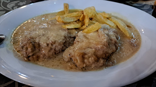 Read moreMesón aparentemente con buenas presencia tanto por fuera como el gran salón elegante que tiene. Me esperaba bastante más nivel de lo que realmente tiene. Pedimos a la carta. Me pedí de primero un salmorejo que estaba bien, pero nada del otro mundo. El servicio lento para estar el salón a 3/4 partes. De segundo me pedí un solomillo relleno de jamón y queso de torta. Necesita mejorar ese solomillo que realmente no sabía a nada. Me lo esperaba de otra forma, y no adobado en harina. De postre, me pedí tarta de queso. La tarta de queso no era de horno, era fría… le faltaba la intensidad de esas buenas...