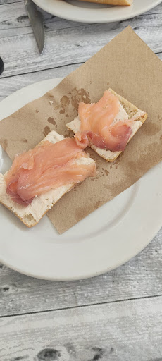 Tuvimos que pagar un tosta de salmón que incluía queso, mermelada de tomate y salmón ahumados. Bien, ahora nos llegó una triste tosta, sin apenas tostar el pan, de media loncha de salmón, queso de untar y sin resto de mermelada por ningún lado.