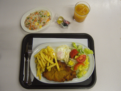 The cafetaria serves decent food and service was excellent when I was there during a quiet evening but part of the self service area was closed.