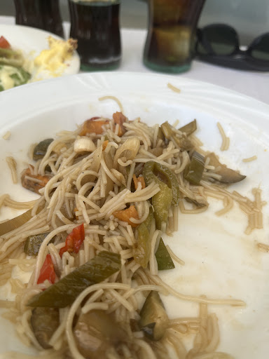 La carne recalentada probablemente, más dura e insulsa no podía estar. El pimiento frío, de nevera. El queso no estaba mal.