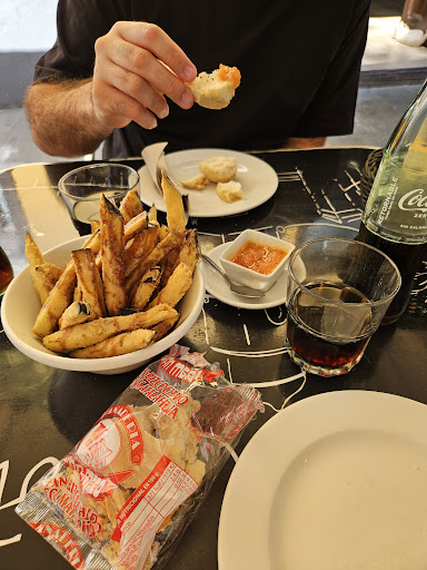 Read moreFuimos justamente hoy, íbamos con nuestro bebe de 20 meses, teníamos idea de pedirle al niño unas croquetas y papas para llevarle y le pedimos croquetas de pollo con papa, primero nos dicen que venían croquetas de jamón, espinaca y pollo, que nos apartaban las de espinaca pero que de pollo y jamón no las podían separar, le decimos al camarero que entonces nos ponga una pechuga y papas para el niño, le comentamos que en vez de irnos pues que mejor nos sentábamos tomábamos algo y el niño comía allí, nos dice que no se puede que están todas las mesas reservadas (habian 3 mesas dentro vacias sin cartel de reservado y fuera también). Mi marido le pregunta que si las de dentro también estaban reservadas y nos dice: si solo van a tomarse algo no se pueden sentar porque esto es un restaurante, para tapa está el de enfrente cuando le habíamos pedido un plato al niño y lo más probable que fuéramos a comer algo con la bebida. Al ver el trato tan nefasto, poco empatico y borde del camarero cancelamos el pedido, le dije al camarero que ya podía tener mejor servicio y empatía y nos fuimos. De vergüenza, sobre todo cuando íbamos con un niño pequeño, si la comida estaba buena lo siento, el...