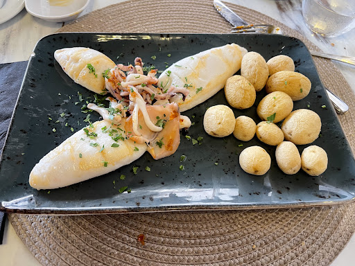 Read morePedimos de entrante papas arrugadas con mojo, papas de miniatura y recalentadas, tendrían que estar más duritas y el mojo muy escaso y extraño, de textura no homogénea, no es el mojo rojo canario casero que en muchos sitios de la isla se suele comer, y tirando a picante. Pedimos calamar a la parrilla, me traen tres trozos de calamar sahariano pero diminutos, tamaño para niño, y son 18€…me los como y la verdad me quedo a medias, tuve que picar de lo que le sobró a mis hijos jajajajaja, mi hijo pidió calamares fritos, ahí sí que tengo que decir que buenos y de cantidad aceptable para el precio que pagas, que no es barato, mi mujer un salteado oriental de pollo verduras y arroz, aceptable, el alioli que pedimos otra vez tamaño miniatura infantil, y somos cuatro personas, o sea, no es un sitio para ir con mucha hambre porque si es así vas a pagar bastante, no vayan si quieren comer platos grandes con cantidad, resumen hay mejores sitos para comer teniendo en cuenta relación precio-cantidad-calidad...