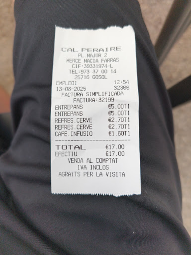 Read moreCom que la cuina estava tancada no vam poder dinar a les 16h. Però tenen una botiga a dins que pots comprar i ens van deixar menjar a les taules de la terrassa perquè estavem consumint beguda. Ara bé, l'única persona agradable és la noia jove que tenien treballant, i pobreta treballa totalment condicionada. Ja que comprem producte a la seva botiga (pà i embotits) que per cert, la llonganissa no és TANT seca, entre poc i massa. Una llonganissa més pedra que el Pedraforca... doncs els vam demanar cetrilleres i ens van dir que no, que es pagava a part... vam dir que OK. Per 3 sobres de plastic de menys de 10gr d'oli ens varen cobrar 4 euros. Preu totalment inventat. Jo crec que no costa gens ser amable i ser just. Es nota que no els agrada els visitants però precisament pels visitants, també podrien enriquir-se i donar-se a coneixer de manera positiva. Només són agradables amb la gent local.