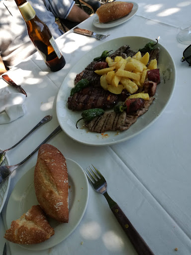 We booked at 9 am Sunday morning (1st May) for lunch that same day. We were told that the only times left were either 13:30 or 15:30. We chose 13:30 as it would be a good time for the children to eat. The house salad (for 2 people) was large. The stuffed aubergines with meat weren't anything to write home about, but the meat we ordered (pluma) and the "patatas a lo pobre" were wonderful. We had cheesecake and "leche frita" for dessert, both were wonderful. Service was good, it was quick but without rushing you. We sat outside in the shade near the play area, which was perfect for the children to play while food arrived or while the adults enjoyed coffee after the meal. There was plenty of room and it didn't feel crowded despite there being quite a few families/groups...