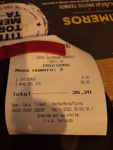 Read moreFuimos animados por las buenas críticas y no todo era tan bonito como lo pintaban. El sitio es muy normalito y a la hora de comer para ser el mes de Enero hacía frío, no había calefacción y cada vez que abren la puerta te quedas pasmado, y te dan ganas de ponerte el plumas para comer, y las mesas las tienen pegadas a la puerta. He de decir que la comida está muy rica pero muy escasa, los platos muy decorados pero muy escasos. Las rocas de bacalao de chiste, estaban ricas pero te tienes que pedir dos o tres platos de ellas para poder comer, pues si le quitas los adornos se queda en cuatro daditos poco más grandes que los del juego de dados. No creo que vuelva, pues me quedé con hambre. A mi mujer que no es de mucho comer no le desagradó tanto a pesar de comer unos mejillones y dos trocitos de carrilleras con puré. No es para ir a...