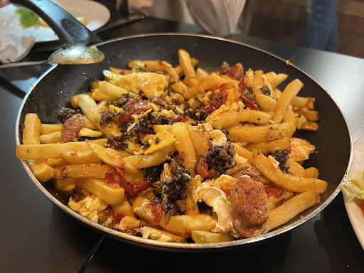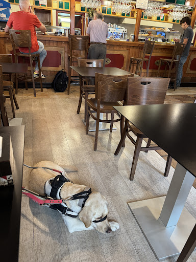 Station Wagon Berria es, sin duda, el sitio ideal para ir con tu perro guía. La acogida a Thelma es perfecta, sin ningún problema, lo que ya de entrada te hace sentir a gusto (5/5). El servicio es excelente, de los pocos locales en Galdakao donde te sirven tanto en mesa como en terraza, algo que se agradece muchísimo (5/5). El ambiente también es de diez, con buena música y un entorno muy agradable para disfrutar del momento (5/5).