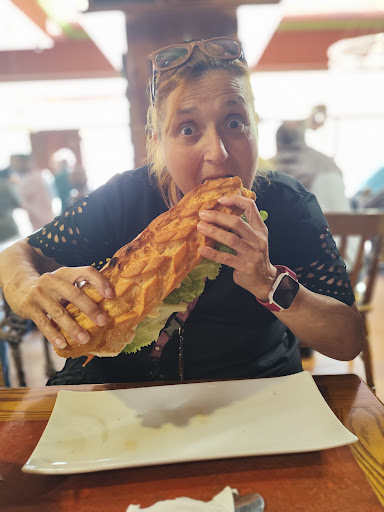 Quise dar una sorpresa en un cumpleaños y acabamos los dos gratamente sorprendidos. El restaurante tiene zona exterior para comer y está en una zona peatonal muy muy ancha, así que es ideal a la hora de comer fuera. Dentro todo un estilo indio americano, muy bonito, decorado con madera, fotos de indios y todo lo que rodea a esa cultura. La comida, muy variada (sandwiches, bocadillos, picoteo....) la sacaron muy rápido. Los platos eran gigantescos, a rebosar. La comida, espectacular (pedimos dos combinados, el 7 y el 11) muy sabrosa. El postre en concordancia con la comida. El dueño una persona muy amable, la cocinera muy trabajadora y el camarero atentisimo. Todo estaba muy limpio, ordenado y nos gustó el ambiente en general. Repetiría allí todas las semanas. Le doy un 10/10 y lo recomiendo a todos el mundo. Gracias, ella disfrutó mucho el cumpleaños, fue feliz, y yo lo...