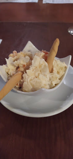 Nada más sentarnos a la mesa nos trajo una tapa de ensaladilla rusa, cortesía de la casa.