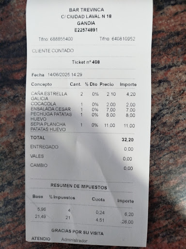 Read moreÉsta gente se ha equivocado de negocio par estar en uno de lo mejores barrios de Gandía, no sé si es un bar o un bufete de abogados porque está siempre cerrado, entre ellos se pelean por montar una mesa... desde que dejaron el trevinca la 2 vez ese local está abierto al fracaso... No aconsejo para nada ir... un sábado está abierto otro no, lunes abre o a lo mejor no... contestarán a esta crítica pero llevo 33 años viviendo arriba suyo y os aseguro que ni tienen ganas de trabajar ni tienen ganas de ser un...