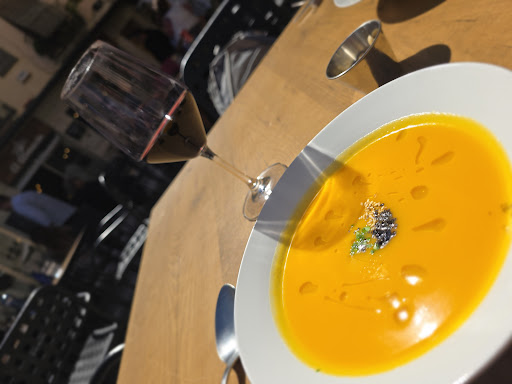 Back to the food!! My soup was soo good and flavoursome, my husband had the salad and the dressing was fantastic!! We shared the steak and lamb!! Really good flavours then add desert, coffee, wine, chupito into it.... can't rave enough how lovely it was and our total bill was around €50!!!