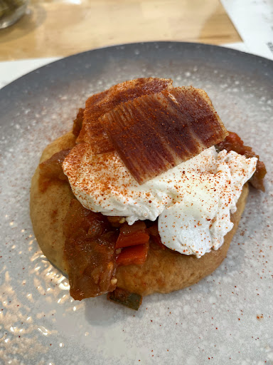 Fuimos por que nos lo habían recomendado y teníamos ganas de probarlo. Quisimos probar un par de cosas ;croqueta de gambas rojas y croqueta de rabo de toro. Estaban buenas, se notaba que eran caseras, pero a mi parecer le sobraba bechamel y le falta un poco más del ingrediente principal. Patatas "estilo delicà"... Unas patatas fritas con ajoaceite y tomate frito.... "calamares con harina de garbanzo" estaban muy buenos y se notaba que estaban hechos allí y no comprados ya congelados. Y finalmente "buñuelo de bacalao" también muy acertado. Casi los platos estaban decorados con un tipo de ajoaceite con tinta (excepto las patatas) El trato en cambio no acompaño nada... Estubimos esperando a que nos atendiera, tubimos que ntrar a pedir que saliera para tomar nota, y cuando vino, le pedimos la comida y nos dijo que nos esperaramos para tomar la bebida mientras atendia a la otra mesa. Bueno, no le dimos importancia y cuando terminó de atender a otros clientes ya tomó nota de la bebida. Habíamos esperado un buen rato, un segundo más no habría estado demás. Una camarera les sacó plato y cubiertos con sus servilletas a la otra mesa. Y a nosotros, el camarero nos sacó los cubiertos y los dejó encima de la mesa sin más... Ni plato, ni servilleta... Pero la cosa siguió...nuestro camarero salió con dos platos con sus cubiertos y su servilleta para la mesa de al lado, ya previamete servida, vio que ya tenían el servicio montado y se fue. Nosotros le pedimos servilletas y nos sacó el servilletero de papel con el cartel de "gracias por si visita". No fuè...