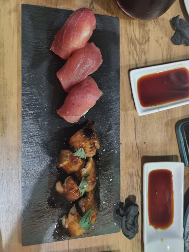 Read moreUbicación perfecta, servicio muy amable por parte de willy y la comida a los mandos de jeff es de otro nivel, hay restaurantes japoneses y ninguno hace sombra a este pequeño lugar, que empezando por el simple jengibre y el wasabi son totalmente diferentes a cualquier restaurante japonés de la zona, los niguiris, uramakis, gyozas son maravillosos y la parte mexicana también esta muy buena, probamos los tacos de cochinita , nos faltó el de chicharrón, pero...
