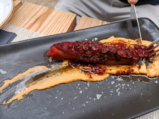 In terms of overall service, it was decent. As for the food itself, we had high expectations, but it fell short in some aspects. The white wine, in particular, could have been of higher quality, and the octopus dish was a bit on the chewy side. It’s worth mentioning that it seemed more like a place of status, where the style and atmosphere took precedence over the culinary experience. The aesthetics of the restaurant and its ambiance compensate for the food quality to some extent. It’s a place where the atmosphere and decor shine more than the cuisine. For the price for 5 adults and one child, I guess it’s a little overpriced since the food could have...