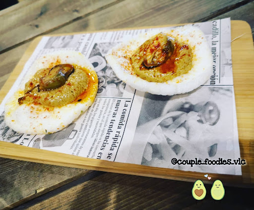 Read moreAcudíamos con las expectativas altas tras leer la carta en su página web, pero como todos los primeros pasos, algunos platos cojean y la combinación de sabores no acaba de cuajar. Repasando nuestro pedido: Aperitivo: champiñones rellenos de carbonara de salmón. Un bocadito cremoso y delicioso. Se agradecen estos detalles. Pan casero con tomate y ajoaceite de pera: no encontramos la pera pero nos dio igual. Ajoceite suave, tomatito rico y pan crujiente y calentito. Ensadilla rusa con espuma de aceituna verde: espuma lograda, con el sabor a aceituna justo para no quitarle el protagonismo a la ensaladilla. Sin embargo, ensaladilla no merecedora de su papel, ya que verduritas de "bien" escondidas tras una mayonesa demasiado bondadosa. Croquetas de carabineros con kimchi: las croquetas son la especialidad del chef y con estas no defraudó. Crujientes por fuera, cremosas por dentro y con un sabor excelente. Detalle importante: hay 3 tipos de croquetas y se sirven en raciones de 4 sin posibilidad de combinarlas; ¡sería un puntazo añadir esta opción! "Churros con chocolate": churros de tortilla de patata con crema de morcilla de Ontinyent. La literatura llama la atención y resulta divertida, pero muy lejos de la potencia de una buena tortilla de patatas y el auténtico sabor y textura de la morcilla. Los churros con sobrante de aceite y la crema demasiado líquida. Conclusión: cuando lo tradicional es bueno, la sencillez es el arma más potente. Okonomiyaki de pulpo: hemos probado esta famosa "tortilla" japonesa en diversas ocasiones y esta sin duda se queda en una intentona. Falta de jugosidad y el pulpo si te despistas no lo saboreas. Coca de bacalao y coca de panceta: optamos por describirlas juntas porque no merecen más. La masa blanda y los demás ingredientes simplemente bien, echando en falta algo en todo momento. Muerte por chocolate: platillo de moda con combinación de diferentes texturas y tipos de chocolate. Falta de entusiasmo en la preparación y productos industriales. Tarta de queso: elaborada a lo crème brûlée, servida en cazuela de barro caliente. Sabores potentes y deliciosos, pero casi que pierde el título de postre y le falta un pan para remojar.