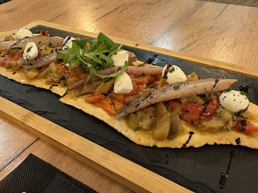 Pedimos una ensaladilla rusa con pulpo al estilo gallega que estaba brutal, y una tosta cracket de espencat con sardina ahumada que era para pedir otra y llevártela de souvenir. Producto bien tratado, sin postureo, y con ese punto de sabor que solo se consigue cuando se cocina con cariño y experiencia.