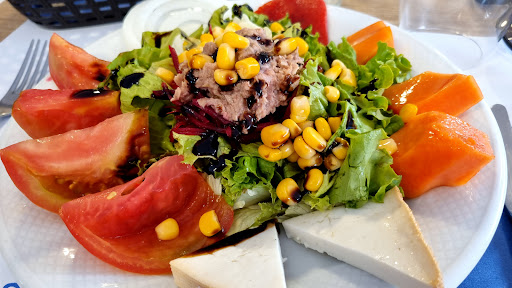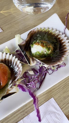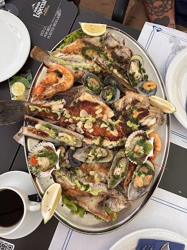 We arrived very early evening as a party of 6. We were looking for a late lunch and initially thought this restaurant would be a little too extravagant for a lunch. However, our late afternoon arrival found there to be plenty of available seating and we were shown to the mezzanine area where there was plenty of beautifully laid tables in a bright and airy setting with sea views. The waiter, Luis, was friendly and very accommodating, explaining the menu in detail when asked. The drinks were shockingly well priced and the house white wine went down a treat. Between us we ordered salads, calamari, grilled squid, garlic prawns and very delicious stew of pork and potatoes. All of the food was tasty and everyone enjoyed their meal. The portion sizes were really generous and left no room for ice cream afterwards (generally unheard of!) Both Luis and Santi were attentive and welcoming and we cannot rate this restaurant highly enough. We look forward to revisiting next year on our yearly pilgrimage to the...