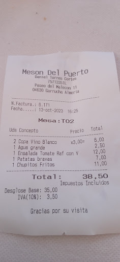 Read moreHoy hemos ido al mesón del puerto a comer una tapa y una bebida,y ha sido una experiencia terrible. Mi hija y yo somos alérgicas al ajo y entre las 3 tapas que había para elegir todas tenían en el pan ali Oli le decimos al camarero, que era un señor mayor que somos alérgicas y nos dice bastante enfadado y con cara de paciencia que nos ponía la tortilla por separado, nos parece idea genial hasta que coge la tortilla del pan con alioli, toda manchada lógicamente de alioli y nosotros alucinados le decimos educadamente que así no lo queremos y que mejor esperamos a que saquen nuevas tapas , nos vamos a sentar y pasaba el tiempo y no sacaban ninguna tapa nueva así que le contamos a la dueña del local, que desde luego no derrocha simpatía, nuestro problema de alergia y la señora nos dice que ella no prepara las tapas y se va a atender otra mesa sin habernos hecho ni caso, una falta de educación importante. Ya cansados de esperar llamamos a otro camarero y por fin nos hizo caso, en cuanto le hablamos de nuestra alergia rápidamente nos sacó una tapa que ya podíamos comer. Tanto les costaba desde el principio traernos otra tapa o de prepararnos una de las que tenían sin alioli, en principio deberían procurar tener a la clientela contenta pero ellos todo lo contrario, desde luego después del trato tan pésimo recibido nosotros no vamos a volver más, han perdido unos clientes...