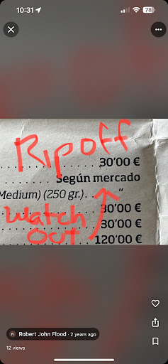 Read moreMyself and my Spanish wife with her sister and husband with 3 hungry teenagers all sat down. 1 biochemist, a standby prop and two lawyers. The waiter was boisterous and larger than life. They ordered as they are Spanish. He crept and kept pushing the second dish to share a kg of white fish to go with the delicious prawns. However that dish has a note attached that was unexplained. “SEGÚN MERCADO” what this means is prepare to remortgage your house or catch of the day. The prawns were pricy but worth it, we had a round of drinks (5) and teenagers had soft drinks however the charged us over 350 for this with our caption above being...