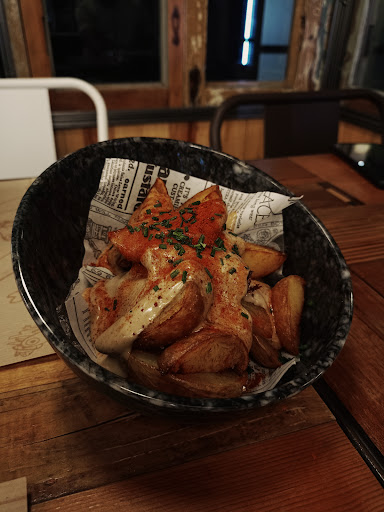 Fuimos a este restaurante recomendado por un amigo para probar su comida elaborada con productos del terreno, y no nos decepcionó. El restaurante está situado en la misma carretera general dentro de Gata. Tienes aparcamiento público en las calles traseras. El local no es muy grande pero es acogedor. Tiene una decoración muy bonita y se respira un ambiente tranquilo. Al entrar nos atendieron rápidamente y nos sentamos en una de sus mesas. Nos tomaron nota de la bebida mientras mirábamos la carta. Tienen una carta con QR. En ella puedes encontrar, entrantes, ensaladas, pizzas, cocas, pasta y postres. Tienen también una carta de vinos. Para ir abriendo el apetito pedimos unas Bravas Especiales, Burritos de sobrasada y una Ensalada Caprese. También puedes preguntar si tienen algún entrante fuera de carta!!! Seguidamente como platos principales nos decantamos por probar cuatro de sus pizzas. Una Calzone abierta con un huevo en el medio, la pizza Nostra, una pizza Marinera y la recomendada una pizza Cebolla Golosa. Si los entrantes ya nos parecieron muy ricos, con productos frescos y una elaboración increíble, las pizzas no fueron para menos. Las que más nos gustaron fueron la Cebolla Golosa, muy Top, y la pizza Nostra. Si es verdad que para mi gusto, la masa estaba demasiado hecha, y esto provoca que al enfriarse la masa quede muy dura e incomestible en los bordes. Pero no sobró nada!!! Nos hubiese encantado probar más pizzas pero decidimos pasar a los postres. Nos venimos un poco arriba y pedimos cinco postres. Una Pannacotta de chocolate, una Tiramisú de manzana, dos Brownies y una Tarta de Queso. Sin dudarlo el que más me gustó fue la Pannacotta, pero todos los demás estaban increíbles. Fue una experiencia muy buena, poder comer allí y degustar sus platos. Seguro que repetimos y lo...