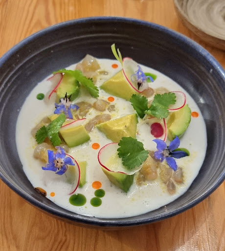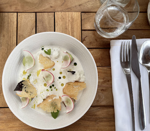 Read moreTucked in the pueblo blanco (white village) of Gaucin is Azulete, a charming restaurant wedged into the mountainside. You’ll have to walk up 7 mintues from the parking area on the main street below. This wee hike prepares you for the gem that is Azulete. Gabby the chef, Alexi the bartender/sommelier and server, and Dani, the dessert princess, form the team. Young, gorgeous, and intentional, their lovely greeting immediately makes you feel welcome. The menu is equally accessible and welcoming, just one page of curated options: starters, entrees, and dessert. My friend and I shared a wild bass carpaccio, a cold almond gazpacho dotted with rare tuna cubes topped with avocado puree, radish and (I think) green squash, a melt in your mouth hake with crispy skin, swimming in the purest saffron jus, ending with two desserts: a tangy, bright pineapple sorbet with fresh pineapple basil, mint and basil oil; and an almond ice cream with honey, bee pollen, and rosemary flowers. French artistry with locally sourced produce from the region lends the food an haute cuisine flair with down to earth, exquisitely fine taste. AND, the food is visually stunning. I can see Azulete New York, San Francisco, and Miami already. I’m just happy we got to experience the original! ...