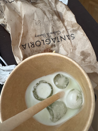 Read moreHola buenas, esta reseña va dirigida directamente a los responsables, propietarios de esta cafeteria (santagloria) ubicada en gava ( Rambla vaireda). Siempre que puedo voy, esta todo buenisimo y el cafe tambien, claro ya lo pagas, pero eso no me importa, calidad & precio correcta. Decoracion, ambiente y el sofa es lo mas. Ahora , el servicio que se presta es inadmisible, y ya digo que la culpa de lo que me ha pasado hoy,no es del personal que trabaja alli, solo eran dos, para cubrir local y terraza, teniendo en cuenta que no hay servicio de mesa ( solo faltaba pobres) pero si que hay servicio de recojida, ustedes creen señores propietarios que se puede dar un servicio correcto con solo dos dependientes, yo creo que no, hoy he tenido que merendar asi,como muestra la foto. Cuando he llegado estaba la terraza llena y las mesas que estaban libres, estaban sin recojer y los dos dependientes desbordados. No se como describirlo, no tengo palabras, pero lo que si se es que seguro que a ustedes propietarios no les gustaria ir a merendar a una cafeteria y tener que hacerlo en una mesa que no esta recogida. No puedo describir como me siento, ha sido humillante. Por favor pongan mas personal, el producto es lo primero, pero sin un buen servicio, no vale...