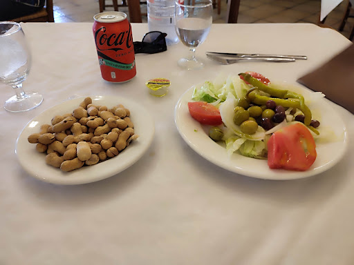 No hay nada como parte sin más con la moto y decir , aquí mismo, después entrar y ver brasas.....ya pensamos aquí almorzaremos bien y efectivamente, que pedazo de almuerzo! Pedimos lo que más se vendía y fue el plato de brasa. De entrante un buen plato de cacaos y una ensalada muy buena con buenas olivas y un buen tomate , bien carnoso , parecía de la huerta. El plato de huevo con patatas, el huevo si hubiera estado hecho con más cariño ya lo hubieran clavado, la yema rota y hecha, nada para mojar ... lástima. Las patatas fritas congeladas....si ponen de naturales suben el nivel a límites insospechados, así que ese plato regular que lo equilibra con un pan tostado a la perfección y un buen ajoaceite. El plato de carne a la brasa..... buenísimo, la panceta 🥓 , a mí me gusta más hecha, pero igualmente me la comí . Tengo que decir que estaban a punto de cerrar cocina y nos dejaron almorzar, eso es un punto más a favor del local!. Terminamos con un cremaet, potente , lo he tenido que rebajar un poquito con agua, pero bueno no soy muy de alcohol yo . En definitiva, volveré esta vez más pronto a ver si me hacen los huevos y las patatas un poquito mejor. Por cierto 14,5€ por persona, me parece un muy...